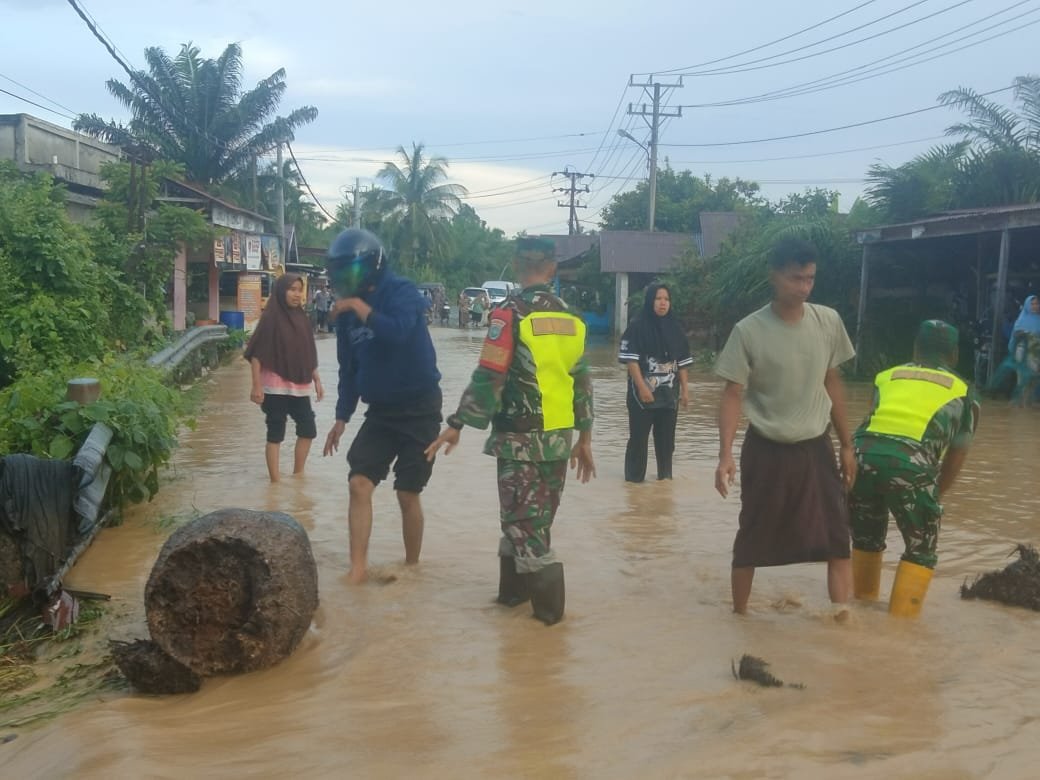 Personel Koramil bersama aparatur desa dan masyarakat bahu-membahu melakukan evakuasi warga, memindahkan barang-barang berharga ke tempat aman, serta membantu membuka akses jalan yang tertutup genangan. Babinsa di wilayah itu juga ikut memastikan keselamatan warga lanjut usia, anak-anak, serta membantu menyalurkan bantuan darurat.