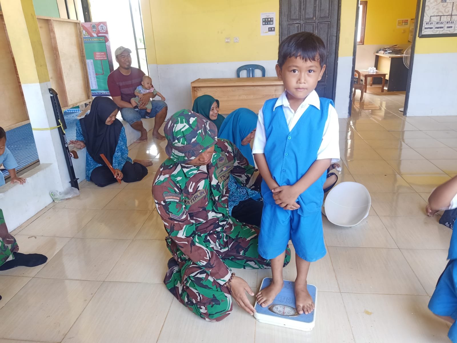 BARITO KUALA – Anggota Satgas TMMD Ke-126 Kodim 1005/Barito Kuala terlihat aktif terlibat dalam kegiatan Posyandu yang digelar di RT 07, Desa Tumih, Kecamatan Wanaraya, Kamis (16/10). Kegiatan ini menunjukkan bahwa peran TNI tidak terbatas pada pembangunan fisik desa, tetapi juga pada penguatan pelayanan kesehatan masyarakat.
