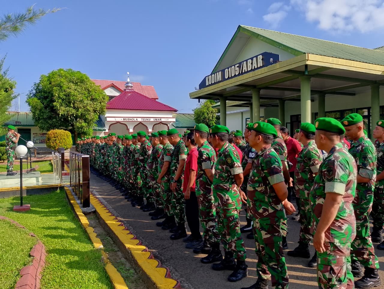ACEH BARAT – Mengawali pengabdian pasca dinas cuti Lebaran 1447 Hijriyah, Dandim 0105/Abar Letkol Inf S. Kembaren, S.E., M.I.P., CFrA., memimpin apel pagi perdana yang dilanjutkan dengan kegiatan Halal Bihalal bersama seluruh prajurit dan PNS TNI. Kegiatan tersebut berlangsung di Lapangan Apel Makodim setempat yang berlokasi di Jalan Imam Bonjol, Desa Drien Rampak, Kecamatan Johan Pahlawan, Rabu (25/3/2026).
