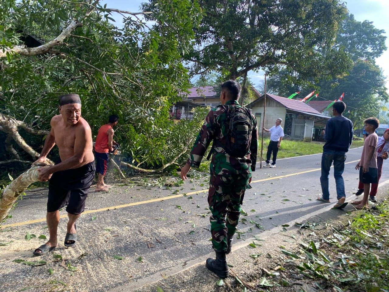 Setelah menerima informasi dari masyarakat binaan, Praka Karno langsung menuju lokasi kejadian dan bersama masyarakat melakukan pembersihan evakuasi material pohon tumbang menggunakan alat seadanya seperti parang dan gergaji mesin. Kegiatan ini merupakan salah satu contoh kepedulian Babinsa terhadap masyarakat binaan dan lingkungan sekitar.