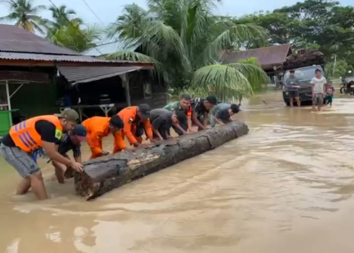 ACEH JAYA – Hujan deras yang mengguyur wilayah Kabupaten Aceh Jaya dalam beberapa hari terakhir menyebabkan aliran Sungai Krueng Teunom meluap dan menggenangi sejumlah titik di Kecamatan Pasie Raya pada Kamis (27/11/2025) sekitar pukul 18.15 WIB. Kondisi ini berdampak langsung pada permukiman warga di Desa Pulo Tinggi yang menjadi salah satu lokasi terparah.