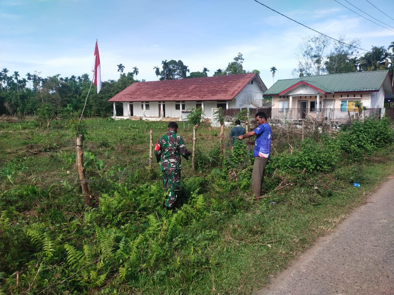 ACEH JAYA – Babinsa Posramil Darul Hikmah Kodim 0114/Aceh Jaya, Sertu Haslimin, melaksanakan kegiatan karya bakti bersama warga desa binaan di Gampong Cot Pange, Kecamatan Darul Hikmah, Kabupaten Aceh Jaya, Kamis (25/12/2025) pukul 10.00 WIB.