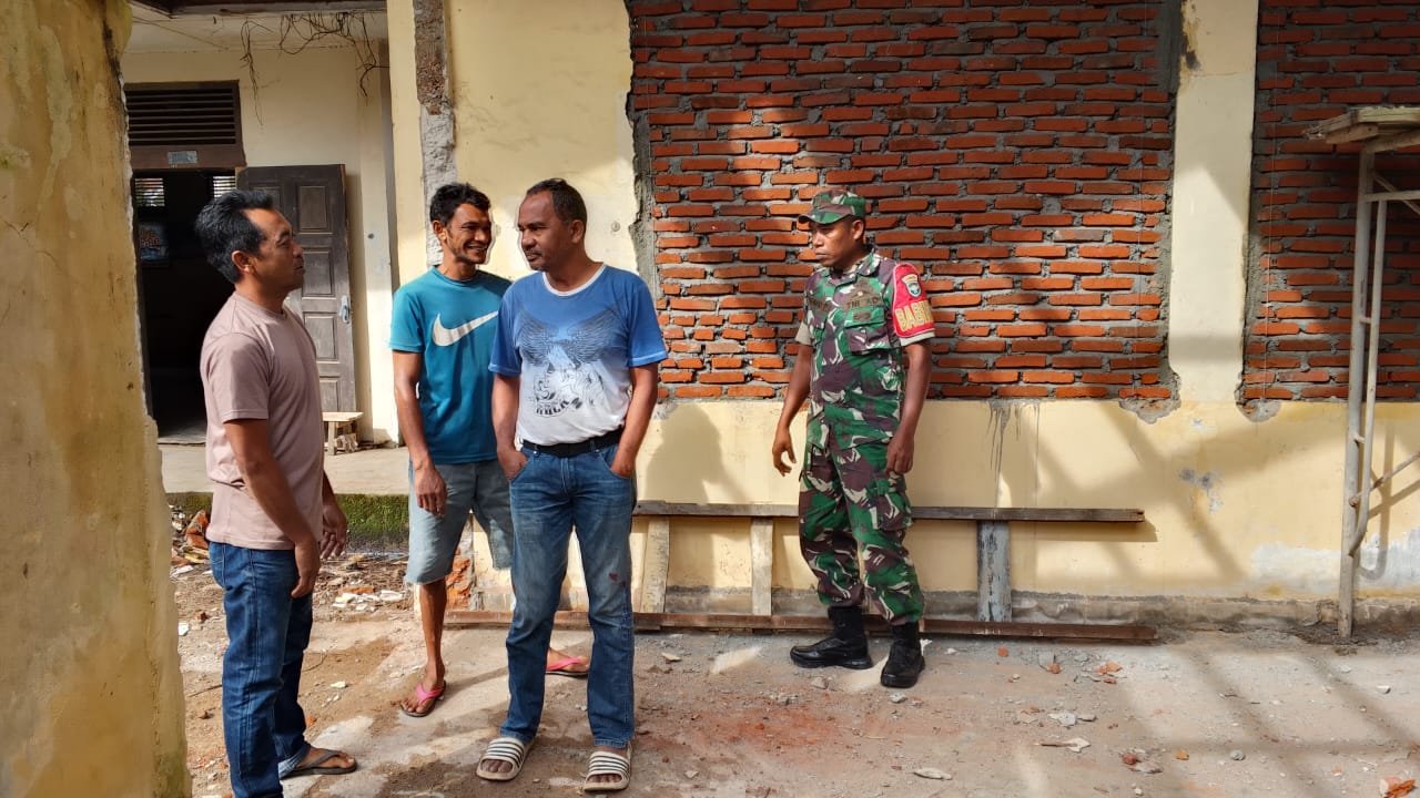 ACEH JAYA – Babinsa Koramil 01/Jaya Kodim 0114/Aceh Jaya, Koptu Rahmat Putra, ikut membantu pelaksanaan pembangunan rumah sekolah SD Negeri 2 di Desa Meunasah Weeh pada Rabu (19/11/2025). Kehadiran Babinsa dalam kegiatan tersebut menjadi bagian dari upaya TNI mendukung kemajuan fasilitas pendidikan di wilayah binaan.