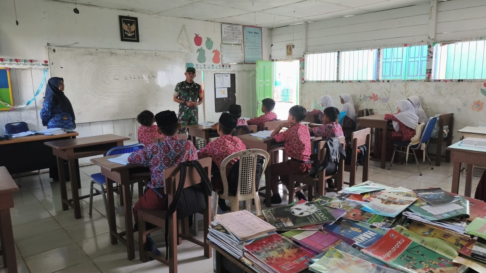 ACEH JAYA – Babinsa Koramil 01/Jaya Kodim 0114/Aceh Jaya, Serda Yunadi, memberikan materi wawasan kebangsaan kepada para siswa SD Negeri 2 Jaya di Desa Meunasah Weh, Kecamatan Jaya, Kabupaten Aceh Jaya, Kamis (02/04/2026).