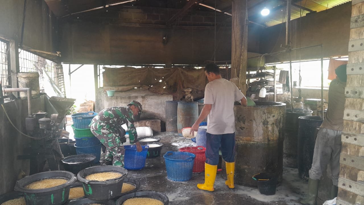 Dalam kegiatan tersebut, Babinsa mengunjungi langsung tempat produksi tempe dan tahu milik warga di wilayah binaannya. Kunjungan tersebut dimanfaatkan untuk berdialog dengan para pelaku usaha sekaligus memantau kondisi proses pengolahan makanan yang menjadi salah satu sumber penghasilan masyarakat setempat.