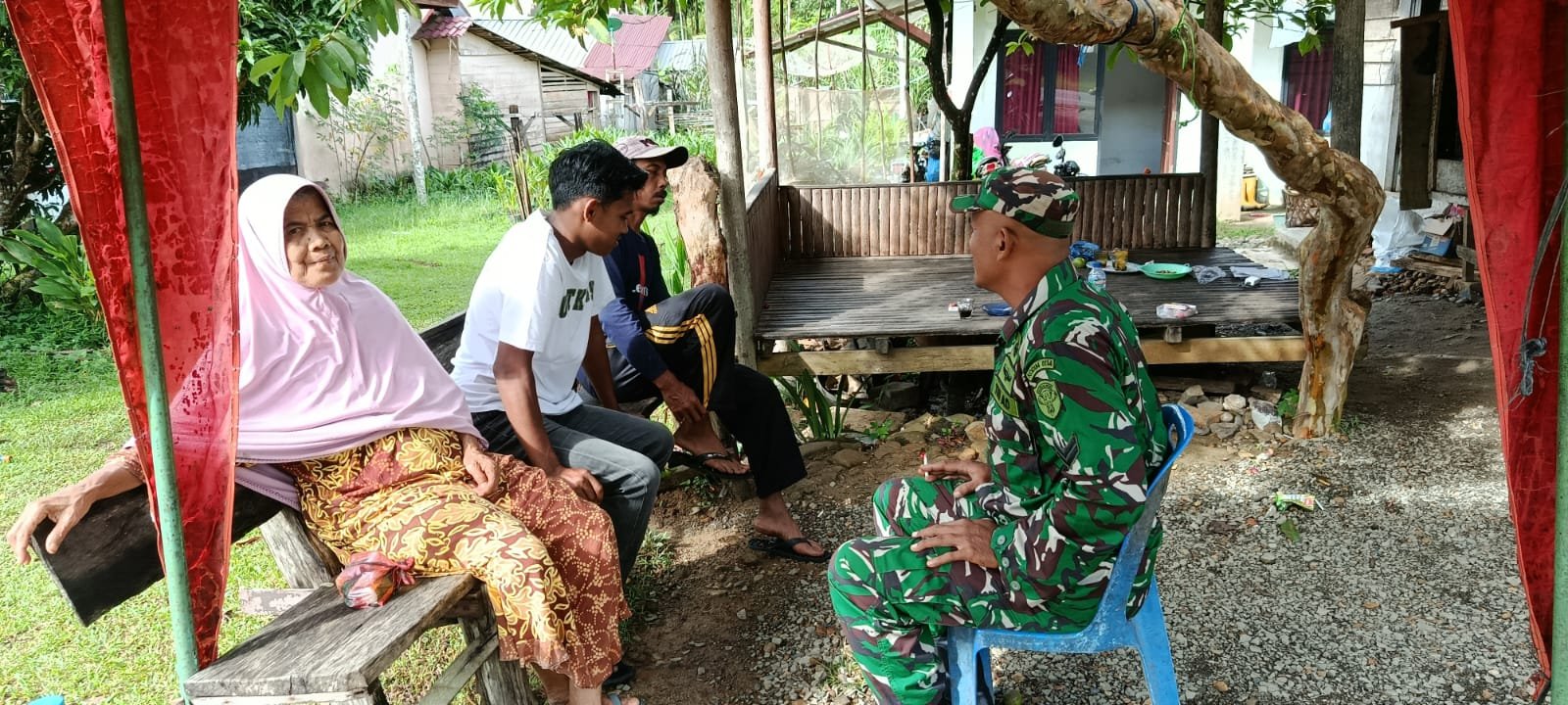 Sambil bersenda gurau dan membangun suasana santai, Babinsa berinteraksi dengan warga untuk menyerap informasi terkait kondisi sosial di wilayah binaan. Pendekatan komunikatif ini diharapkan dapat menjaga hubungan harmonis antara TNI dan masyarakat, sekaligus memperkuat peran Babinsa sebagai garda terdepan teritorial.(0114).