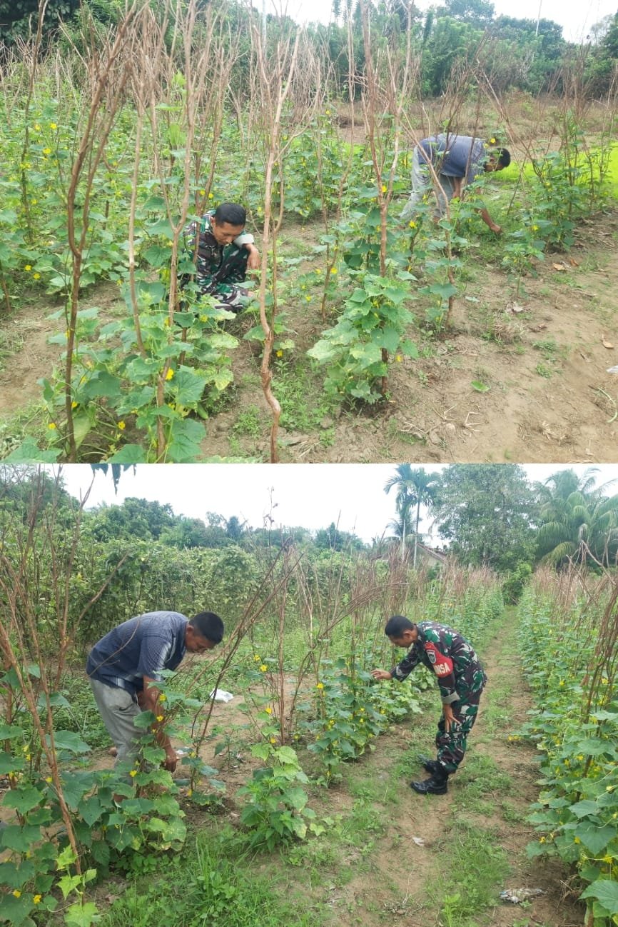 Di tengah hamparan tanaman mentimun, tampak Babinsa dan petani begitu akrab dan bersemangat dalam proses pembersihan, kendati menggunakan alat manual atau tradisional.
