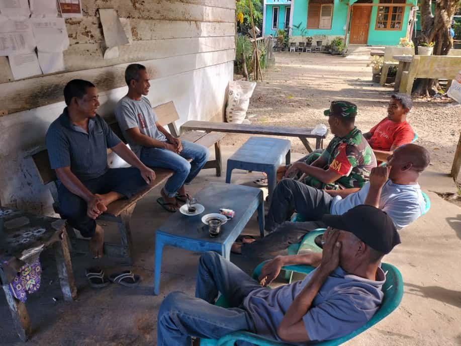 ACEH JAYA – Babinsa Koramil 05/Panga Kodim 0114/Aceh Jaya Koptu Izrillah melaksanakan kegiatan komunikasi sosial (komsos) bersama masyarakat di Desa Tuwi Kayee, Kecamatan Panga, Kabupaten Aceh Jaya, Jumat (24/10/2025).