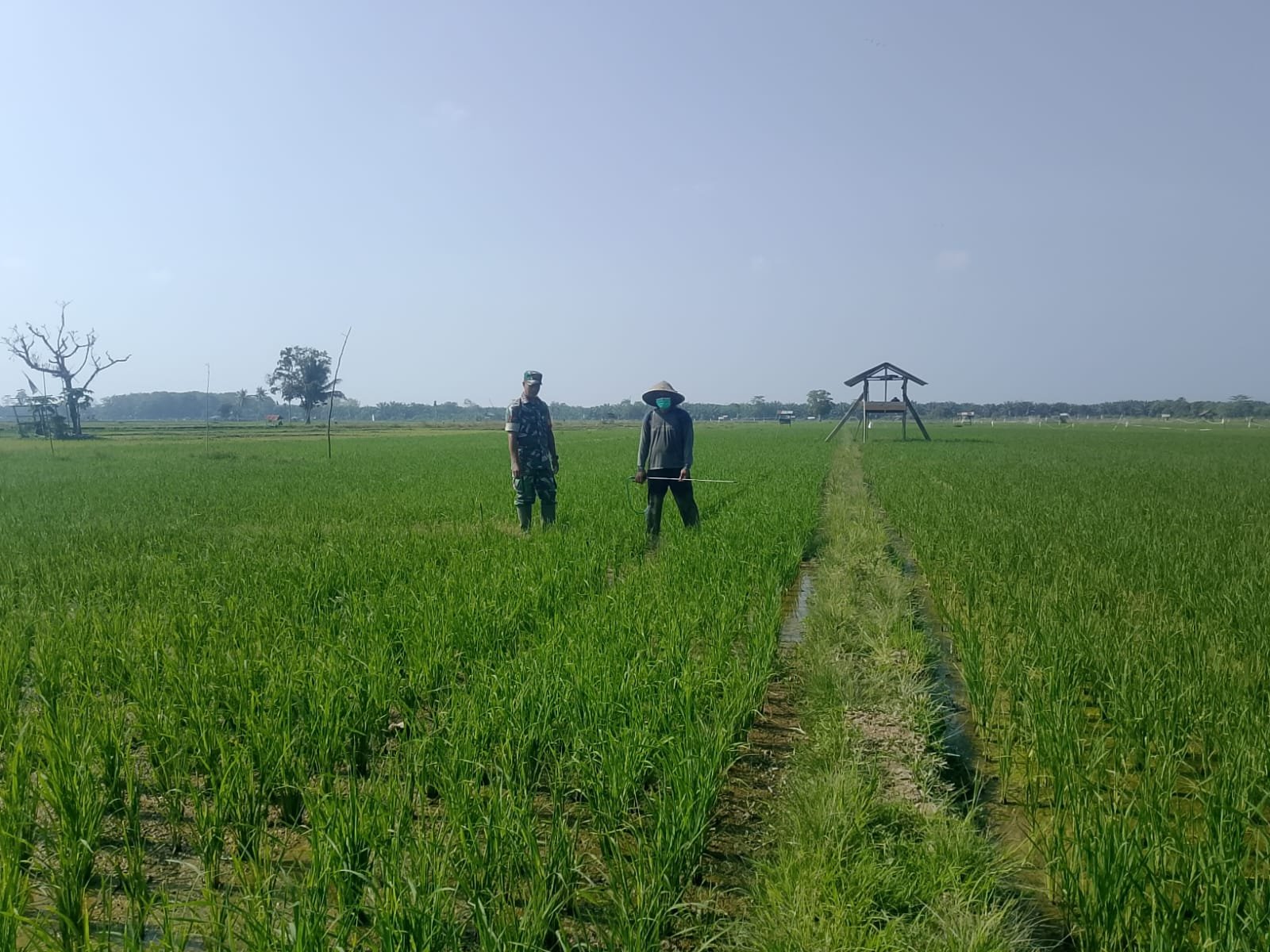 Kunjungan tersebut dilakukan untuk memantau perkembangan dan pertumbuhan tanaman padi milik Sdr. Idris (45). Sejak awal masa tanam, Babinsa secara rutin mendampingi petani guna memastikan proses budidaya berjalan dengan baik.