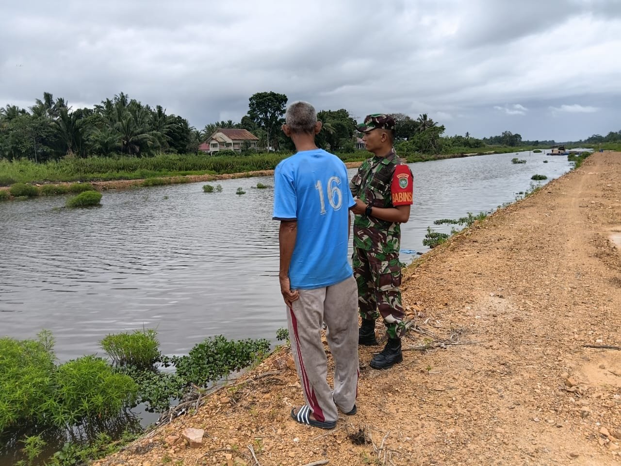 Selain melakukan pengecekan di lapangan, Serma M. Syukriadi juga berkoordinasi dengan aparat desa serta masyarakat setempat untuk mendapatkan informasi terkait kondisi sungai dan lingkungan sekitar.