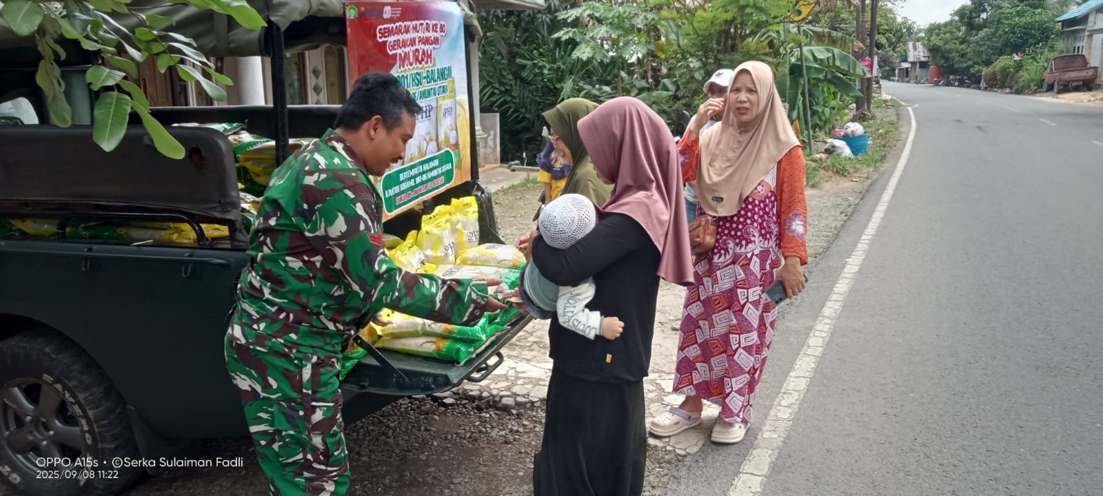 Salah satu warga, Bapak Mahran, menyampaikan rasa syukurnya atas adanya kegiatan pangan murah ini. “Kami masyarakat sangat terbantu dengan adanya program ini. Harga beras lebih terjangkau, sehingga bisa meringankan kebutuhan sehari-hari. Terima kasih kepada TNI yang sudah peduli dengan rakyat kecil,” ungkapnya.
