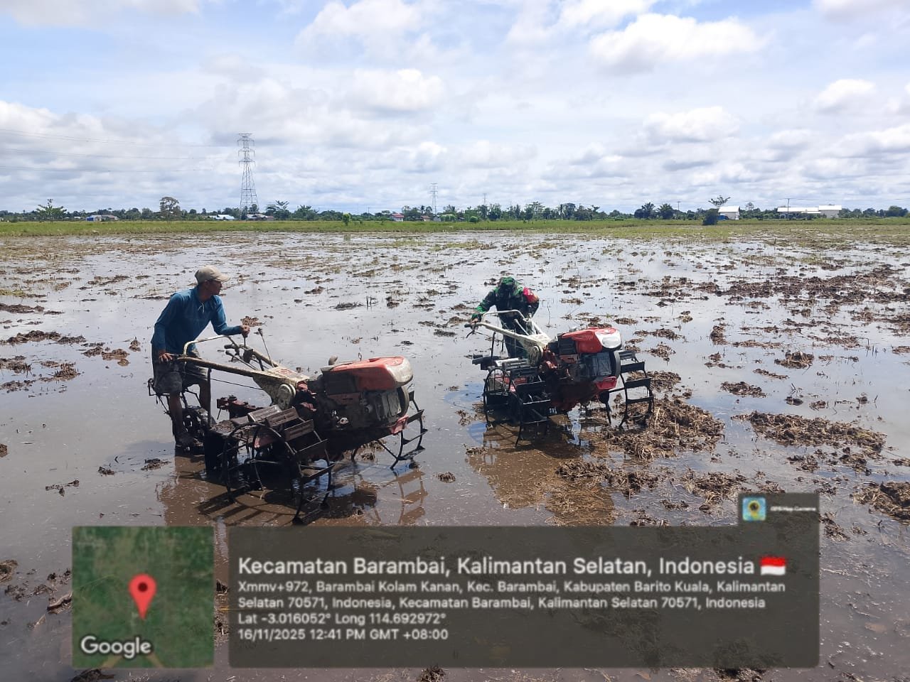 Rantau Badauh, Barito Kuala – Sertu I Ketut Bhakti, seorang Bintara Pembina Desa (Babinsa) dari Koramil 1005-03/Rantau Badauh, aktif melaksanakan kegiatan pendampingan Luas Tambah Tanam (LTT) dengan membantu petani menanam padi di wilayah binaannya. Kegiatan ini dilaksanakan di Kecamatan Rantau Badauh, Kabupaten Barito Kuala. Pada Minggu 16 November 2025.