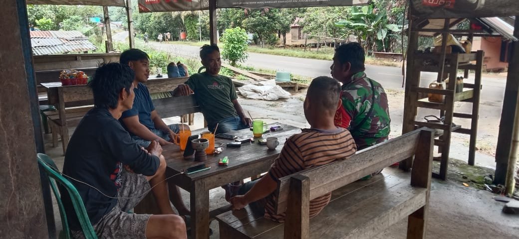 Ketapang — Dalam rangka menjaga situasi keamanan dan ketertiban di wilayah binaan, Sertu Mujianto, Babinsa Koramil 1203-05/Sungai Laur, melaksanakan patroli wilayah sekaligus komunikasi sosial (komsos) bersama masyarakat di Warkop Pak Usman, Desa Teluk Bayur, Kecamatan Sungai Laur, Kabupaten Ketapang, Sabtu (11/10/2025).