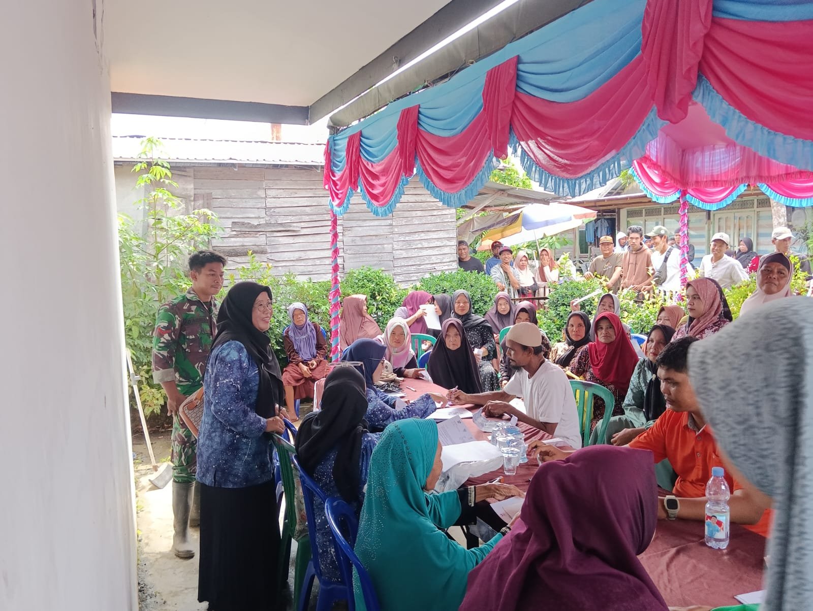 Kegiatan pembayaran BLT di Desa Purwosari 1 berjalan dengan tertib dan lancar. Masyarakat penerima bantuan tampak antusias dan berterima kasih atas perhatian dan dukungan yang diberikan oleh pemerintah dan TNI.(1005).