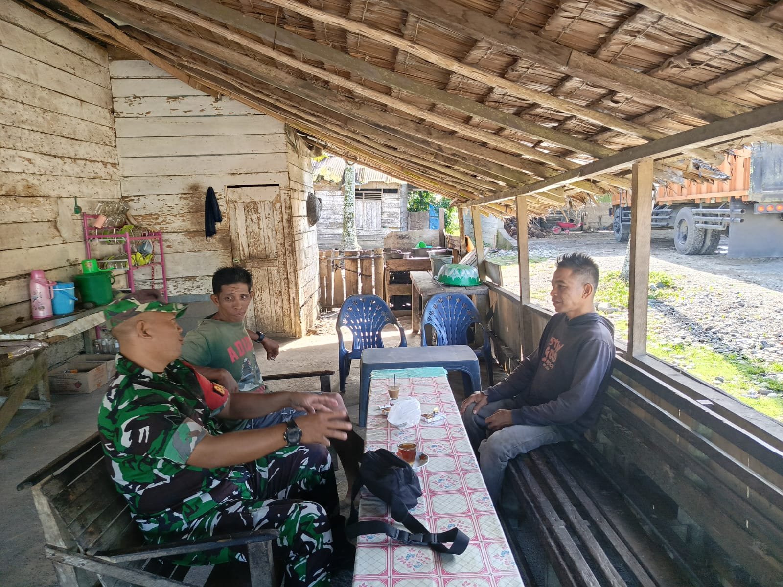 ACEH JAYA – Babinsa Posramil Pasie Raya Kodim 0114/Aceh Jaya, Sertu Syamsul, melaksanakan kegiatan komunikasi sosial (Komsos) bersama warga di Desa Pasi Teubee, Kecamatan Pasie Raya, Kabupaten Aceh Jaya, Selasa (14/10).