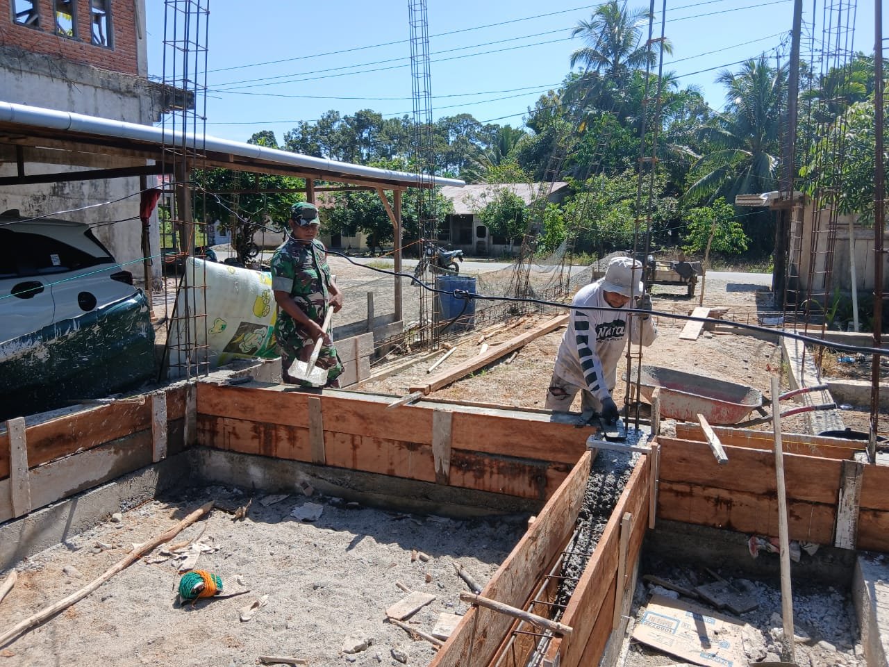 Kegiatan yang dilaksanakan pada Senin (29/09), ini merupakan wujud nyata kemanunggalan TNI dengan rakyat. Serda Amrillah terlihat bahu-membahu bersama warga setempat dalam tahapan krusial pembangunan rumah warga, yaitu pengecoran pondasi. Kehadiran Babinsa ini memberikan motivasi tambahan bagi pemilik rumah dan warga yang terlibat dalam kerja bakti tersebut.