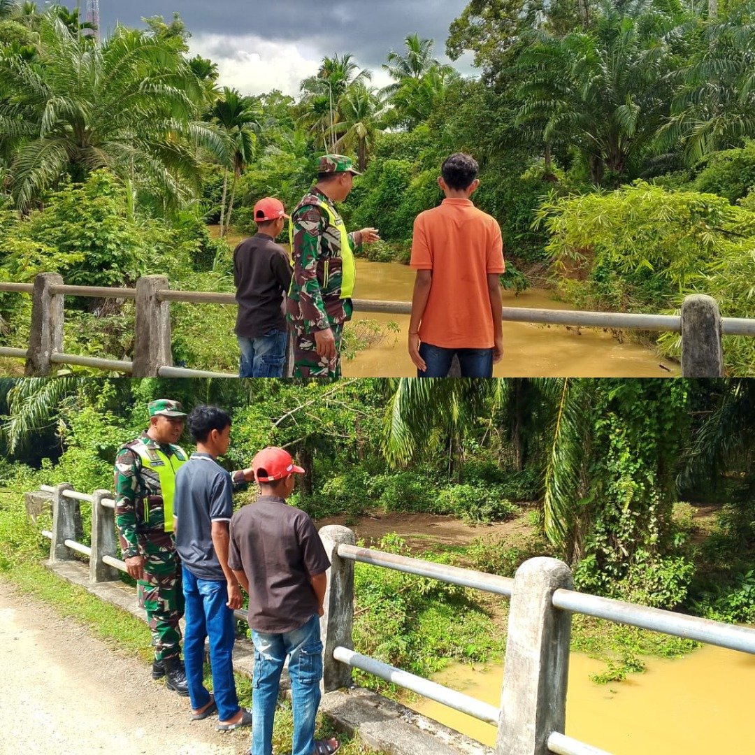 ACEH BARAT – Babinsa Koramil 11/WT, Serda Ilham, bersama warga setempat melaksanakan pemantauan ketinggian air Sungai Woyla di Desa Rambong, Kecamatan Woyla Timur, sebagai langkah antisipasi terhadap potensi banjir, khususnya saat curah hujan meningkat, Senin (02/02/2026).