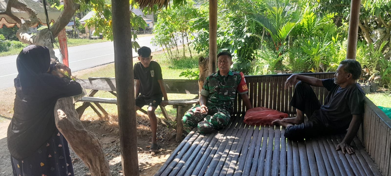 Kegiatan komunikasi sosial ini berlangsung secara santai, dengan suasana penuh keakraban antara Babinsa dan warga. Dialog yang terjalin menjadi sarana efektif untuk menyampaikan pesan sekaligus mendengarkan kondisi yang dihadapi masyarakat.