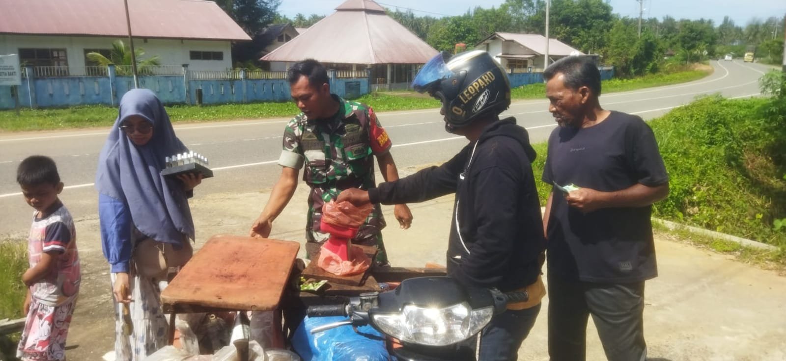 ACEH JAYA – Babinsa Koramil 03/Setia Bakti Kodim 0114/Aceh Jaya, Serda Zainal Aripin, melaksanakan kegiatan komunikasi sosial bersama Umar (36), seorang pedagang ikan keliling yang berjualan di berbagai desa dalam wilayah Kecamatan Setia Bakti, Selasa (18/11/2025).