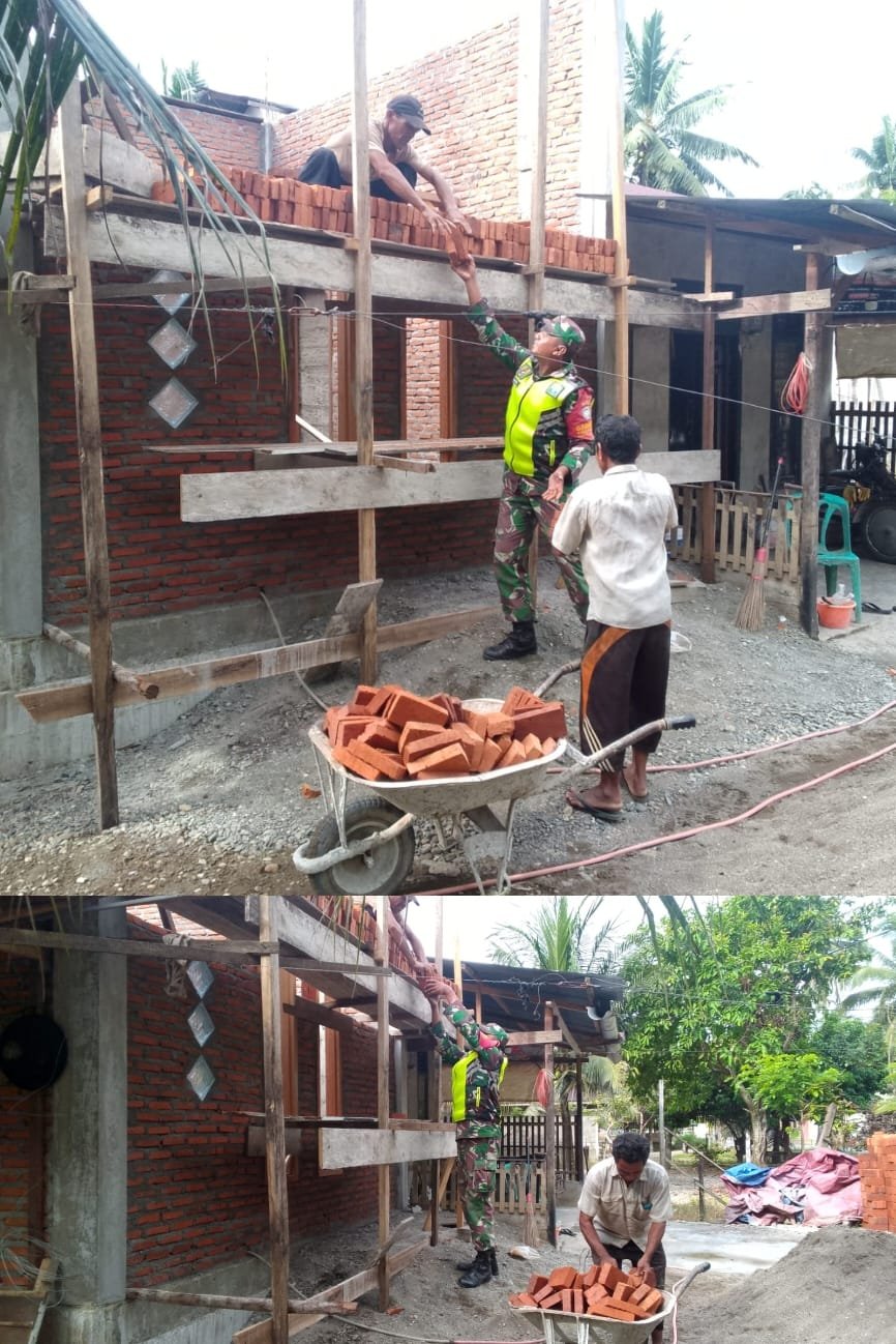 ACEH BARAT – Wujud nyata kepedulian dan kemanunggalan TNI dengan rakyat kembali ditunjukkan oleh Babinsa Koramil 0105-10/Woyla Barat Kodim 0105/Aceh Barat, Sertu Sutrisno, yang dengan sigap membantu warga melangsir batu bata untuk kebutuhan pembangunan rumah di Desa Pasi Malee, Kecamatan Woyla Barat, Kabupaten Aceh Barat, Senin (26/1/2026).
