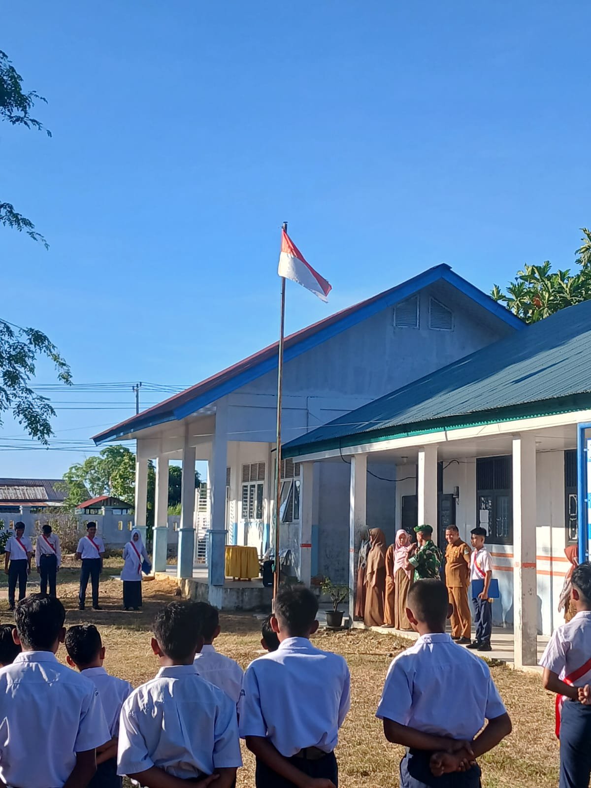 Kegiatan upacara bendera tersebut diikuti oleh para guru serta seluruh siswa-siswi SMPN 4 Setia Bakti dan berlangsung dengan tertib serta penuh khidmat di halaman sekolah.