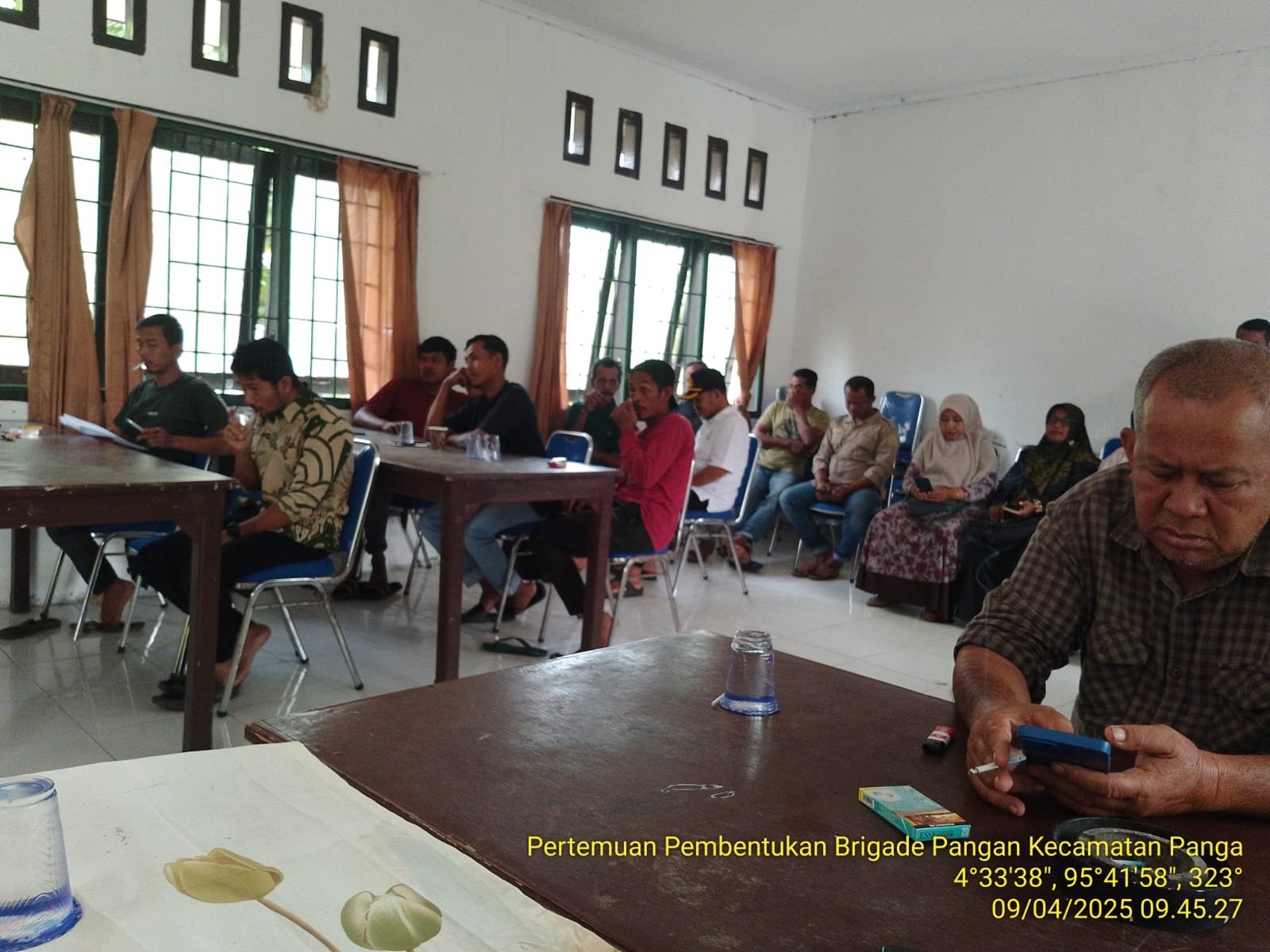 Rapat yang dihadiri sekitar 40 orang ini melibatkan berbagai pemangku kepentingan di sektor pertanian. Hadir dalam pertemuan tersebut adalah Kabid Pertanian Kabupaten Aceh Jaya, Bapak Riswandi, SP; Kepala BPP Panga, Ibu Yuliana, STP; perwakilan dari Koramil 05/Panga yang diwakili oleh Batituud Serka Vien Sitepu; serta para Ketua Kelompok Tani yang ada di Kecamatan Panga. Kehadiran para tokoh ini pentingnya kolaborasi dalam mewujudkan program ketahanan pangan.