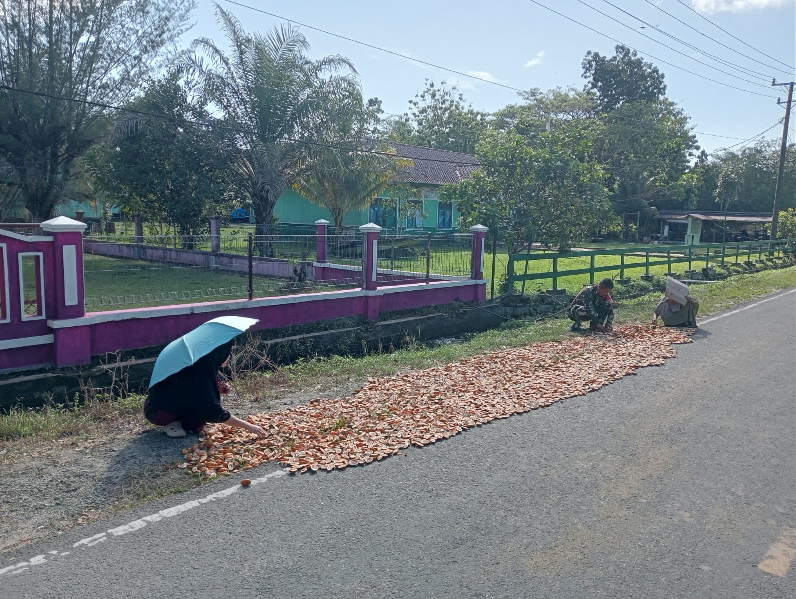 Menurut Babinsa, kegiatan ini dilakukan sebagai wujud pendampingan Babinsa kepada para petani yang ada di wilayah desa binaan, termasuk salah satunya dengan membantu dalam proses penjemuran buah pinang hasil panen dari kebun milik Saiful.