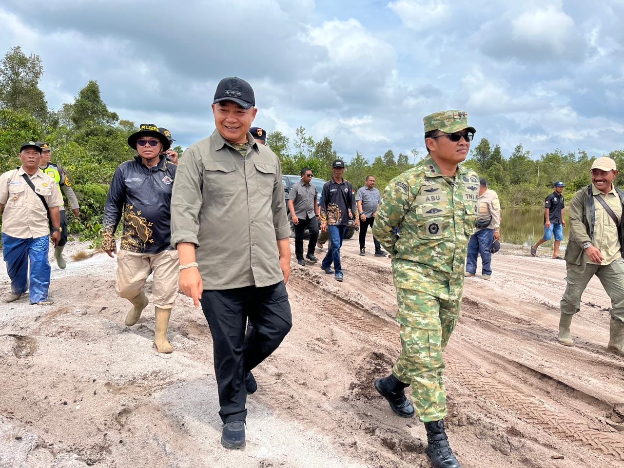 Ketapang – Dandim 1203/Ketapang Letkol Inf Abu Hanifah, S.H., M.I.P menghadiri kegiatan peninjauan lapangan terkait Monitoring Aktivitas Pertambangan di Kecamatan Matan Hilir Selatan dan Sungai Melayu Rayak, Sabtu (29/11/2025).