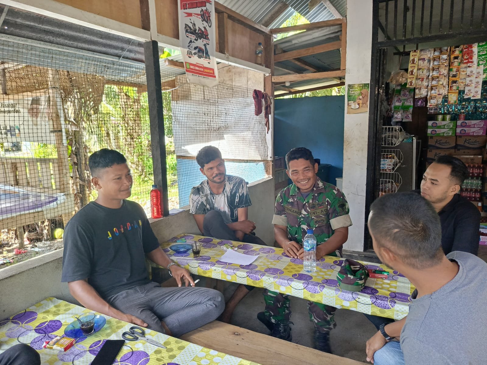 ACEH JAYA – Danpos Ramil Pasie Raya Kodim 0114/Aceh Jaya, Serka Zulkifli Tanjung, melaksanakan kegiatan komunikasi sosial bersama aparatur desa dan warga di Desa Alue Punti, Kecamatan Pasie Raya, Minggu (14/12/2025). Pertemuan tersebut membahas sekaligus mensosialisasikan rencana pembangunan Koperasi Merah Putih yang akan didirikan di desa setempat.