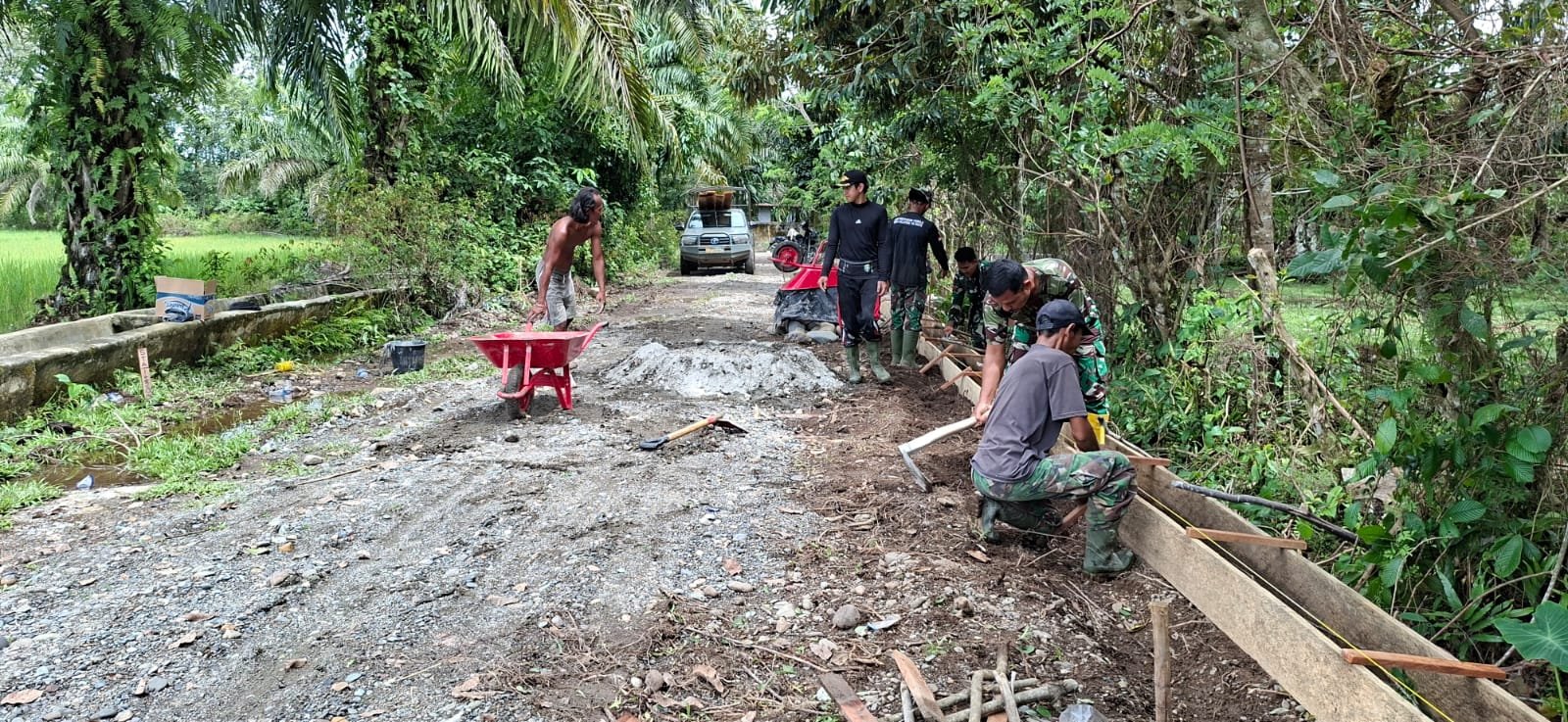 Di bawah komando Kodim 0105/Abar yang merupakan satuan jajaran Korem 012/TU Kodam Iskandar Muda, kegiatan ini menjadi bagian dari program TNI Manunggal Membangun Desa (TMMD) yang menyasar pembangunan infrastruktur demi meningkatkan kesejahteraan masyarakat di wilayah pedesaan.