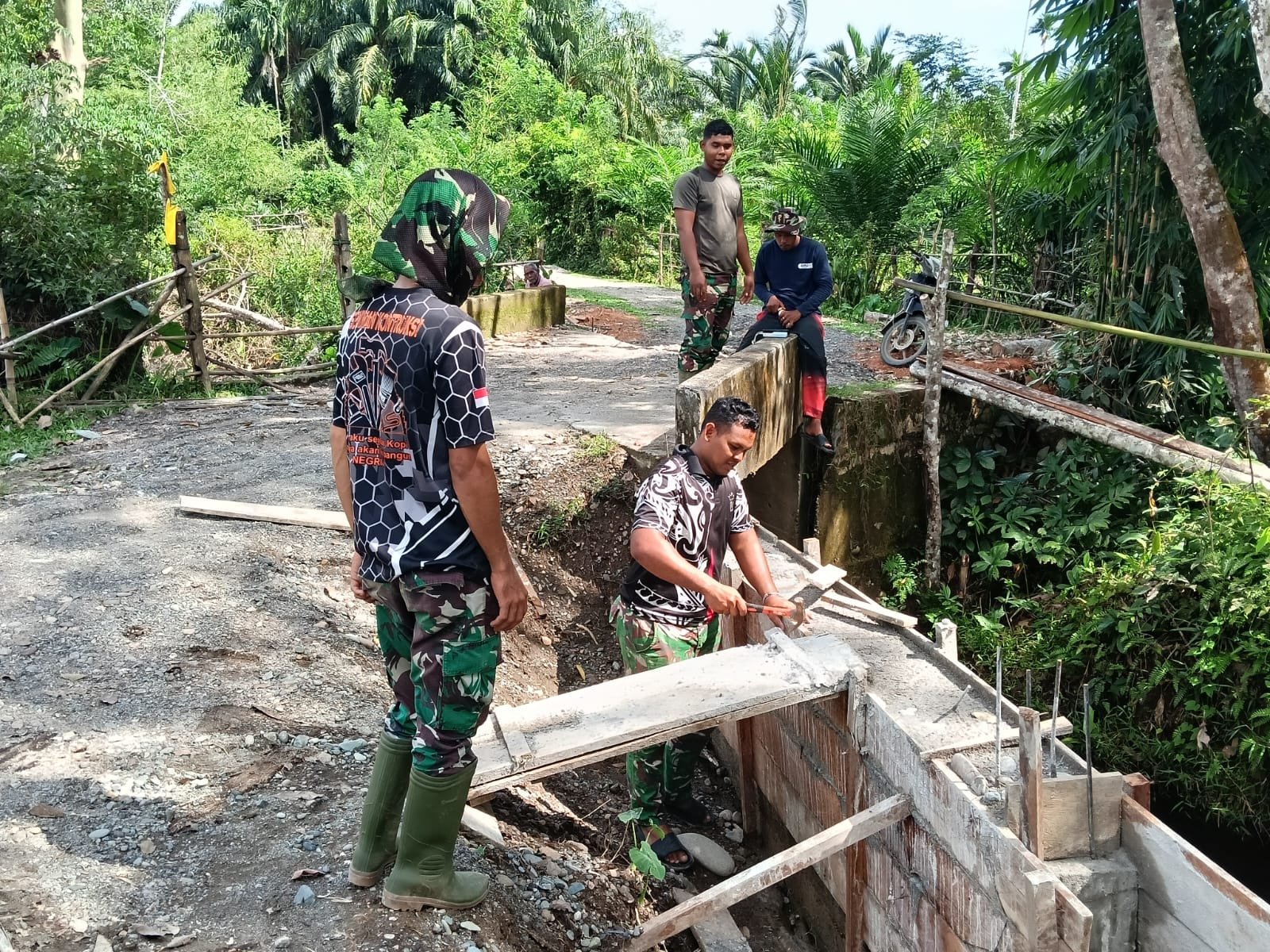 Satgas TMMD Reguler ke-127 Kodim 0105/Abar berhasil merampungkan pengecoran wingwall 100 persen di Desa Pasi Aceh, Minggu (1/3/2026).