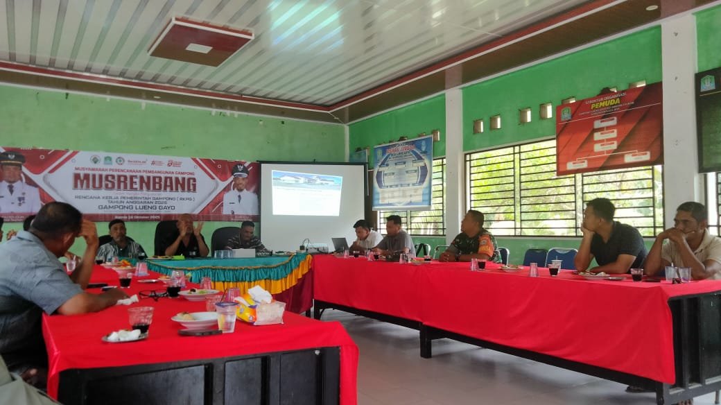 ACEH JAYA – Pemerintah Desa Lueng Gayo, Kecamatan Teunom, Kabupaten Aceh Jaya, melaksanakan kegiatan Musyawarah Rencana Pembangunan (Musrenbang) dengan tema “Rencana Kerja Pemerintah Gampong (RKPG) Tahun 2025 untuk Mewujudkan Gampong yang Mandiri, Maju, Makmur, dan Sejahtera”, pada Kamis (16/10/2025) bertempat di Kantor Desa Lueng Gayo.
