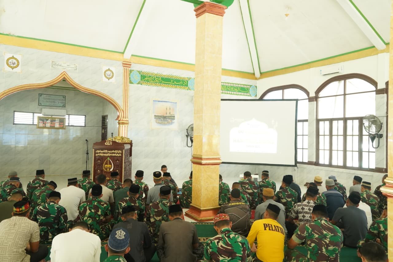 Meulaboh – Dalam rangka memperingati Hari Pahlawan Tahun 2025, Korem 012/Teuku Umar menggelar doa bersama usai pelaksanaan Salat Jumat di Masjid Al-Ikhlas Korem 012/TU, Meulaboh, Kabupaten Aceh Barat, Jumat (8/11/2025).