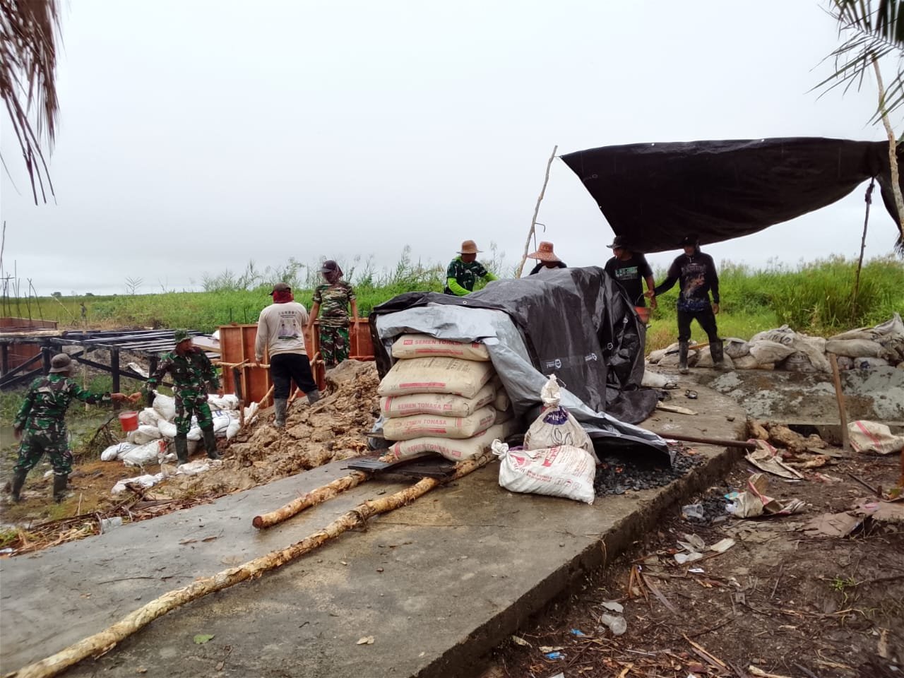 TAPIN — Semangat kebersamaan antara TNI dan masyarakat kembali terlihat nyata dalam pembangunan infrastruktur pedesaan. Babinsa Koramil 1010-05/CLU, Koptu Krisbiantoro, bersama warga bahu-membahu melanjutkan pembangunan Jembatan Garuda yang berlokasi di Sungai Gambung, Desa Sawaja, Kecamatan Candi Laras Utara, Rabu (15/4).