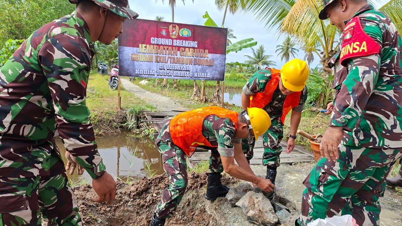 Beliau menambahkan, Jembatan Perintis Garuda merupakan hasil kolaborasi erat antara TNI, pemerintah daerah, dan masyarakat sebagai bagian dari program bakti TNI untuk negeri. “Nama Perintis Garuda mengandung filosofi semangat kepeloporan dan keberanian untuk membuka jalan bagi kemajuan masyarakat di pelosok. Dengan dimulainya pembangunan ini, hambatan geografis yang selama ini mengganggu mobilitas warga dapat segera teratasi sehingga akses pendidikan, kesehatan, dan distribusi logistik menjadi lebih efisien,” jelas Pangdam.