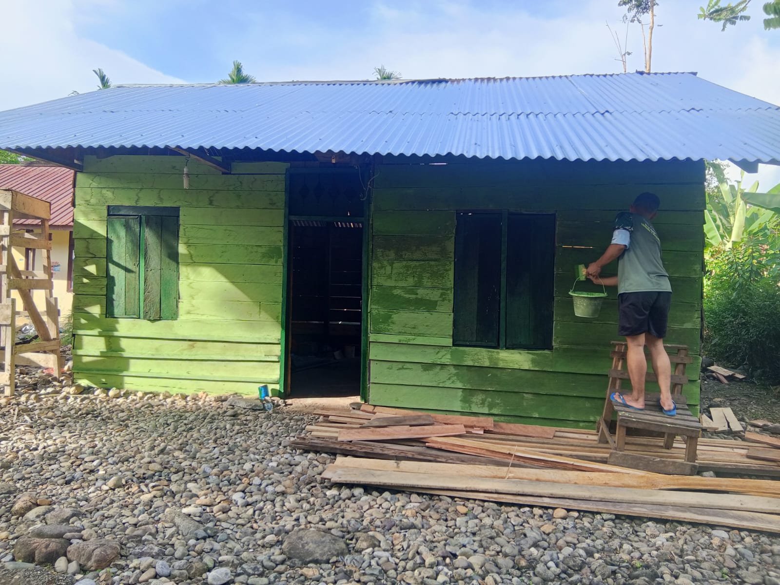 Kegiatan ini menjadi bukti nyata kehadiran TNI dalam membantu masyarakat, khususnya dalam meningkatkan kualitas hunian serta kesejahteraan warga di wilayah pedesaan.(Pr012).