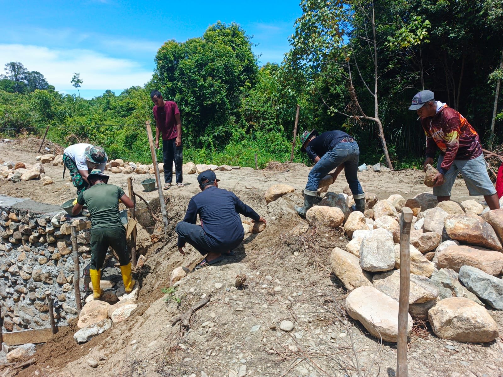 Saat ini, progres pekerjaan difokuskan pada pengecoran lanjutan pondasi di sisi kanan dan kiri jembatan. Di lapangan, personel TNI dan warga tampak kompak bahu-membahu menyelesaikan setiap tahapan pekerjaan secara gotong royong.