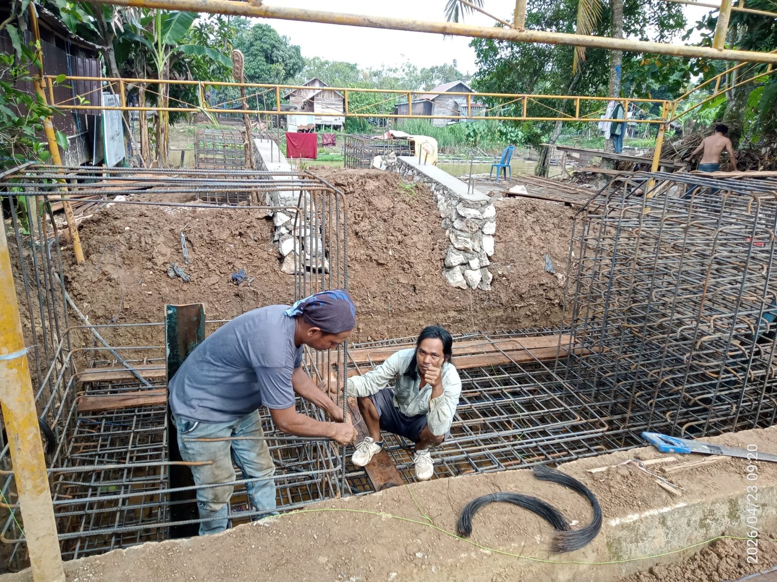 HULU SUNGAI UTARA – Pembangunan Jembatan Garuda yang menghubungkan Desa Tangkawang dan Desa Tuhuran terus menunjukkan kemajuan signifikan. Pada Kamis (23/04/2026), kegiatan di lapangan difokuskan pada tahapan penting, yakni perakitan komponen jangkar di dua titik strategis.