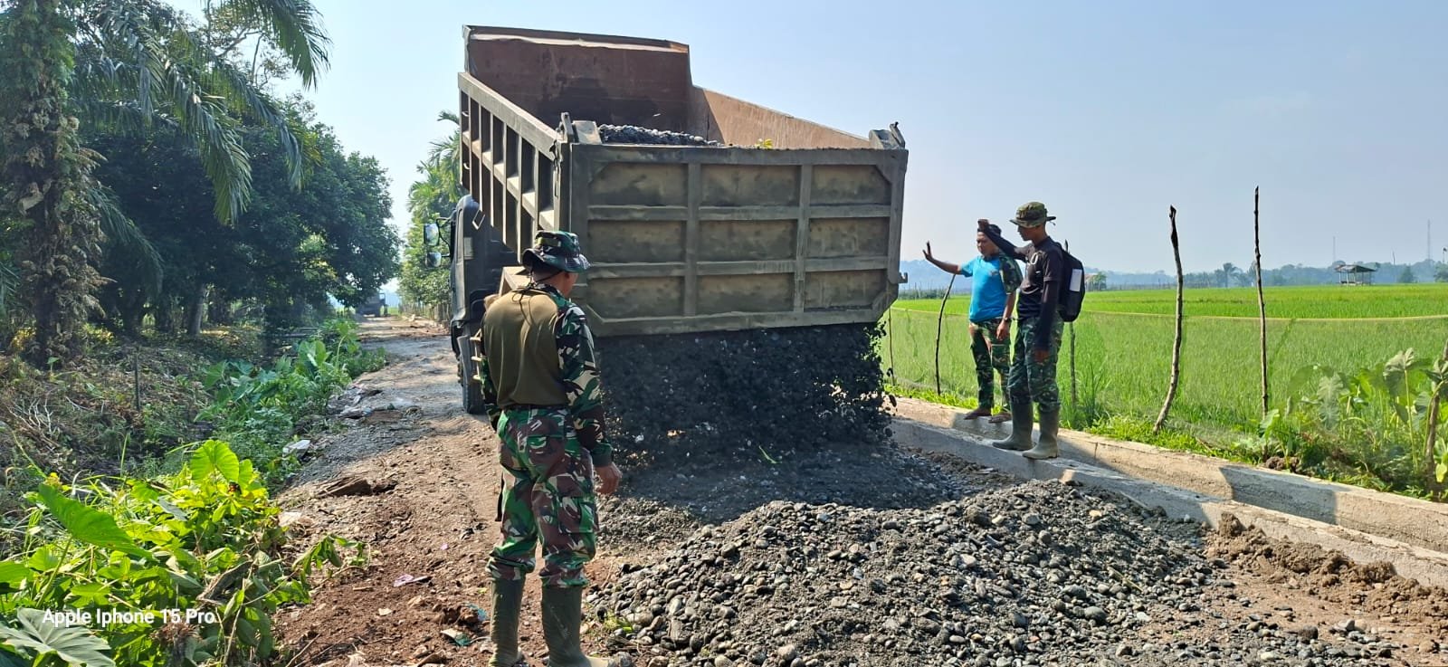 Satgas TMMD Reguler ke-127 Kodim 0105/Abar bersama warga melakukan penimbunan sirtu untuk memperkuat badan jalan. Proses ini menjadi tahap penting agar kendaraan pengangkut hasil tani dapat melintas tanpa hambatan, terutama saat musim hujan.