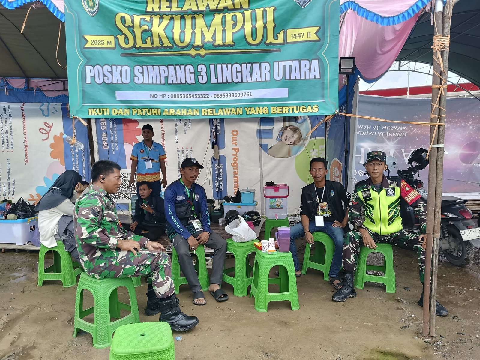 Prajurit Kodim 1006/Banjar bersinergi dan bergabung bersama unsur TNI–Polri, pemerintah daerah, serta para relawan di setiap pos pengamanan, untuk memberikan pelayanan, pengamanan, dan membantu pengaturan arus jamaah di lapangan.