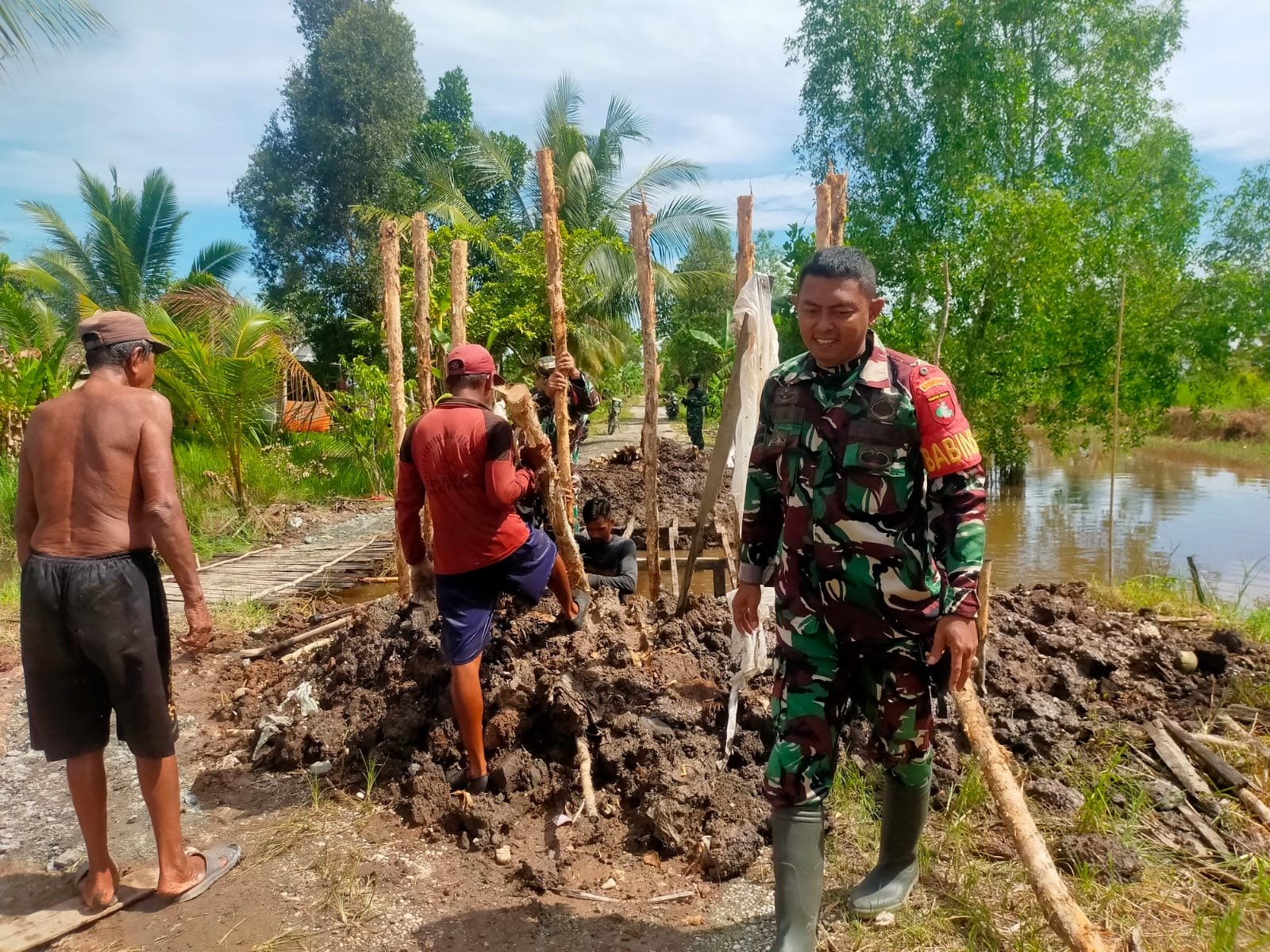 BARITO KUALA – Kodim 1005/Barito Kuala terus bergerak cepat dalam memacu progres pembangunan “Jembatan Garuda” yang berlokasi di Desa Tamban Bangun, RT 10, Kecamatan Tamban, Kabupaten Barito Kuala. Pada hari Sabtu, 11 April 2026, kegiatan konstruksi memasuki tahap yang sangat penting, yaitu pemasangan tiang galam sebagai penyangga utama jembatan tersebut.