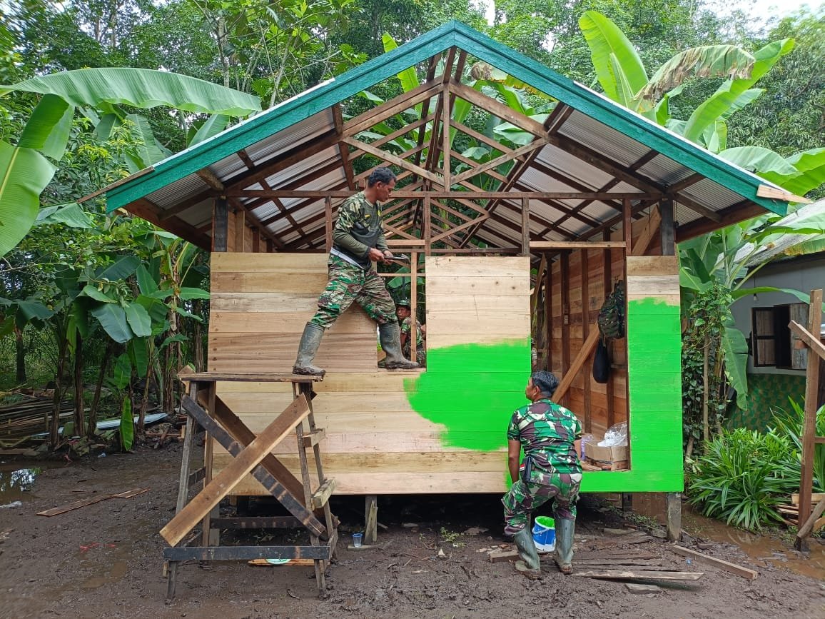 Pembangunan rumah tidak layak huni (RTLH) miliknya kini telah mencapai sekitar 75 persen. Beberapa bagian utama seperti tiang utama telah rampung 90 persen, sementara atap, dinding, dan lantai terus dikerjakan dengan penuh semangat gotong royong oleh personel Satgas dan warga setempat.