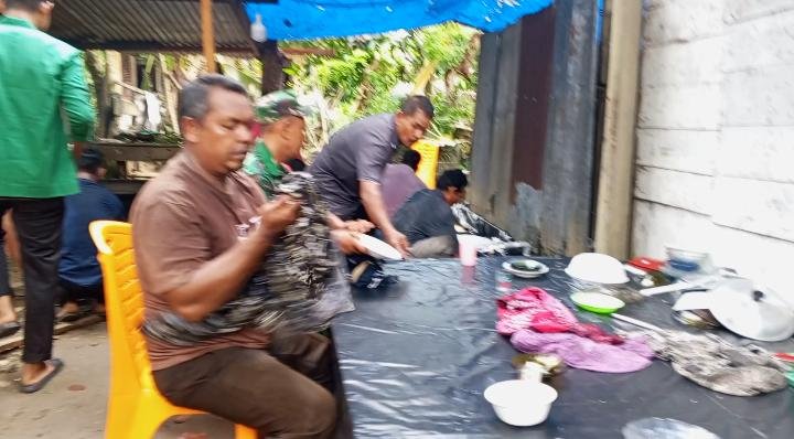 Sejak pagi hari, suasana di sekitar rumah warga tersebut tampak ramai dengan aktivitas kebersamaan. Warga saling bahu-membahu menyiapkan berbagai keperluan kenduri, mulai dari memasak, menata tempat, hingga memastikan seluruh rangkaian acara berjalan lancar. Di tengah kesibukan itu, kehadiran Serka Parwoto turut menambah semangat warga dalam bekerja.