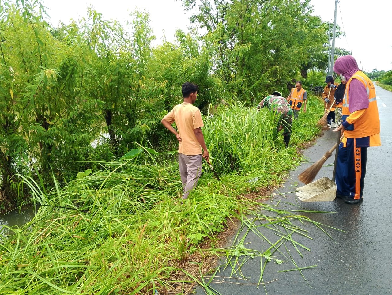 Nagan Raya – Dalam mewujudkan lingkungan yang bersih dan asri, Babinsa Posramil Tripa Makmur, Serda Mukiyat, bersama warga Desa Kabu melaksanakan kerja bakti membersihkan ranting dan rumput di sepanjang jalan Desa Kabu, Kecamatan Tripa Makmur, Kabupaten Nagan Raya, Senin (29/09/2025).