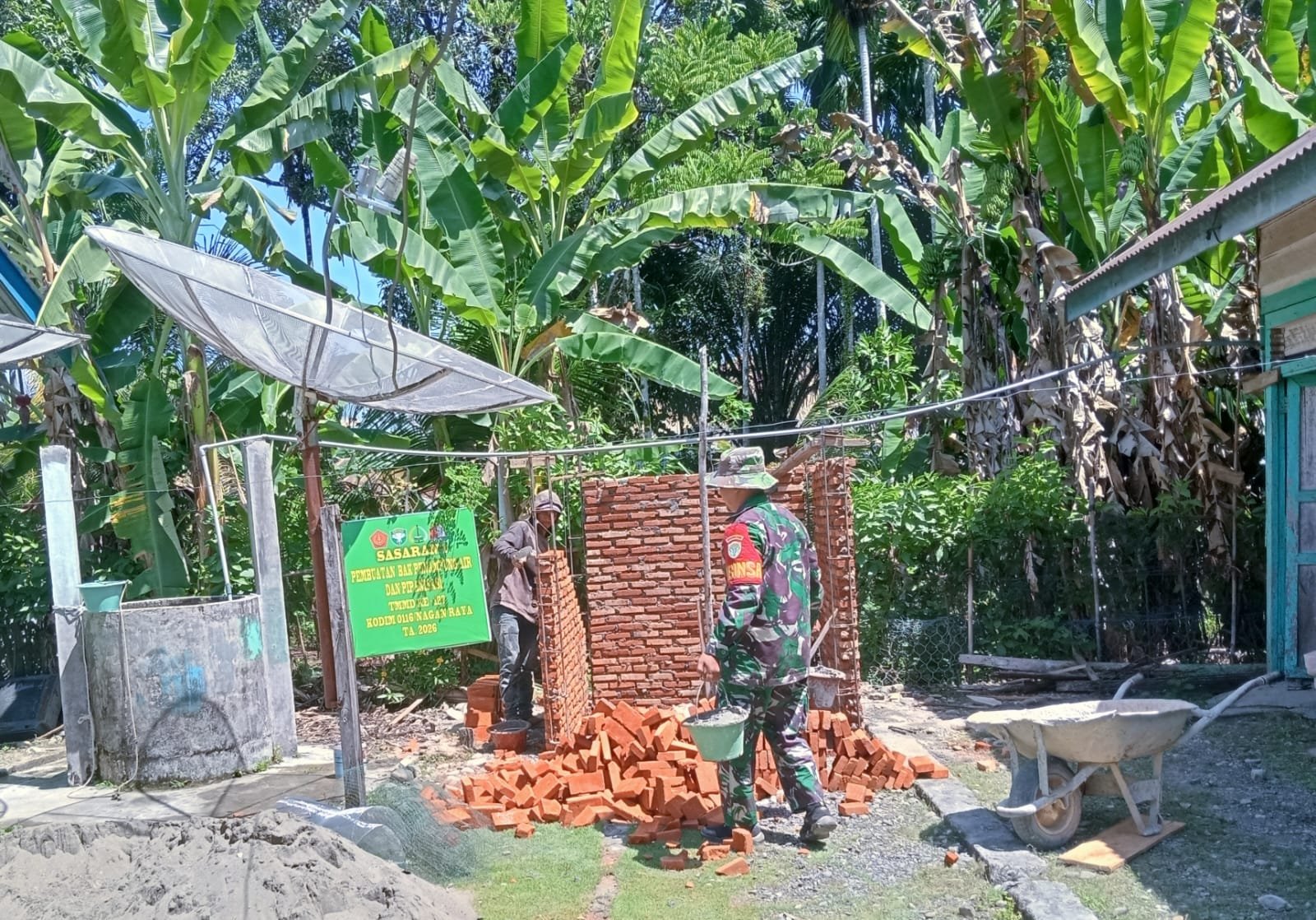 NAGAN RAYA – Pembangunan bak penampungan air dalam program TMMD Ke-127 terus berjalan dengan ritme kerja terencana dan sistematis. Setiap tahapan pembangunan dilaksanakan secara berurutan, layaknya menyusun batu demi batu untuk membangun ketahanan kebutuhan dasar masyarakat, Senin (23/2/2026).