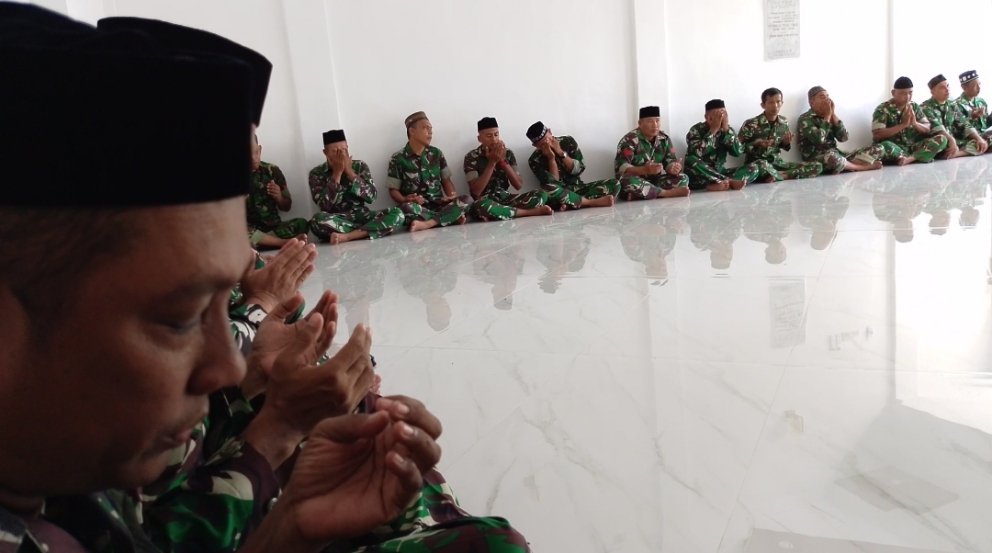 ACEH BARAT – Sebagai wujud solidaritas dan jiwa korsa, prajurit Kodim 0105/Abar menggelar kegiatan pembacaan Surat Yasin dan doa bersama untuk tiga prajurit TNI Satgas UNIFIL yang gugur akibat ledakan proyektil artileri IDF di Lebanon Selatan. Kegiatan berlangsung khidmat di Musholla Teuku Umar Home Base Makodim setempat, Jalan Imam Bonjol, Desa Drien Rampak, Kecamatan Johan Pahlawan, Rabu (1/4/2026).