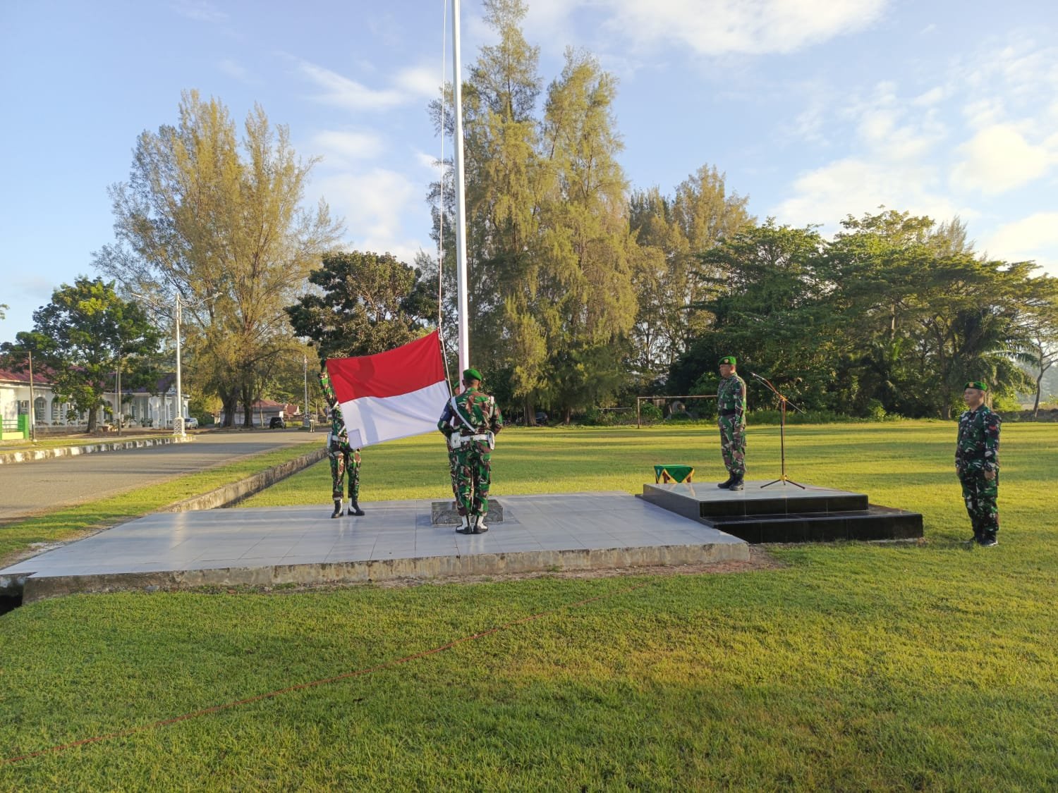 ACEH JAYA – Komando Distrik Militer (Kodim) 0114/Aceh Jaya melaksanakan upacara bendera mingguan yang rutin digelar setiap hari Senin, Upacara bendera kali ini yang bertindak sebagai Inspektur Upacara (Irup) Perwira Seksi Personel (Pasipers) Kapten Inf Afrian.