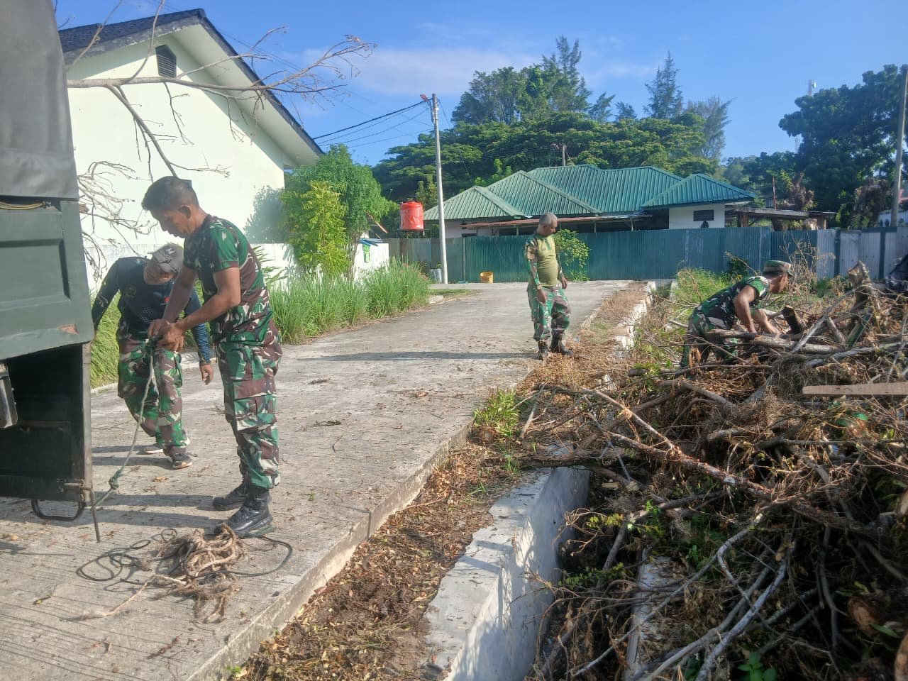 ACEH JAYA – Personel Kodim 0114/Aceh Jaya melaksanakan kegiatan pembinaan pangkalan dengan menata dan membersihkan lingkungan satuan agar tetap terlihat rapi dan asri, Jumat (13/03/2026).