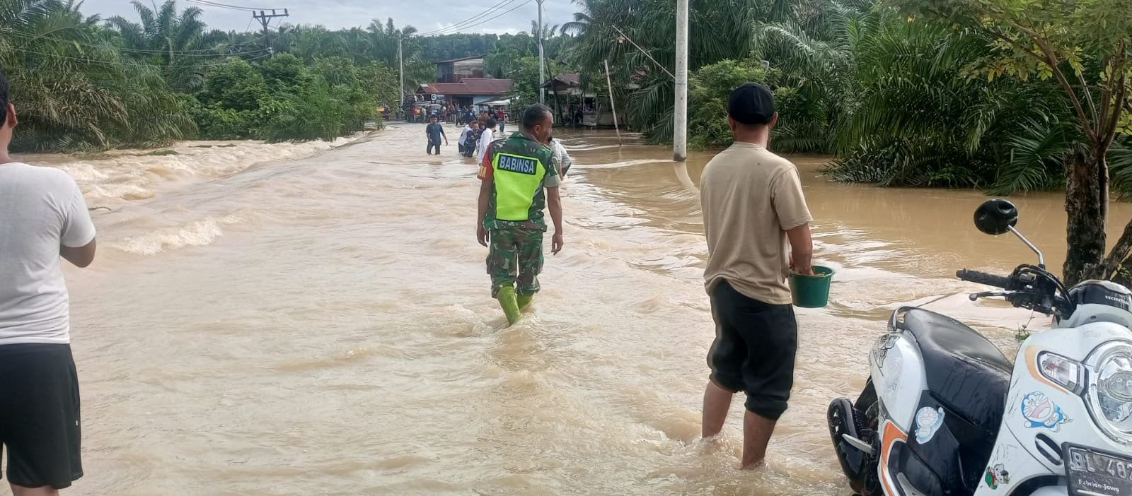“Sebagai aparat kewilayahan, kami harus hadir di tengah masyarakat dalam kondisi apa pun. Saat banjir seperti ini, tugas kami bukan hanya membantu warga yang kesulitan melintas, tetapi juga memastikan keamanan di jalan tetap terjaga,” ujar Serda Sulis Setiawan.