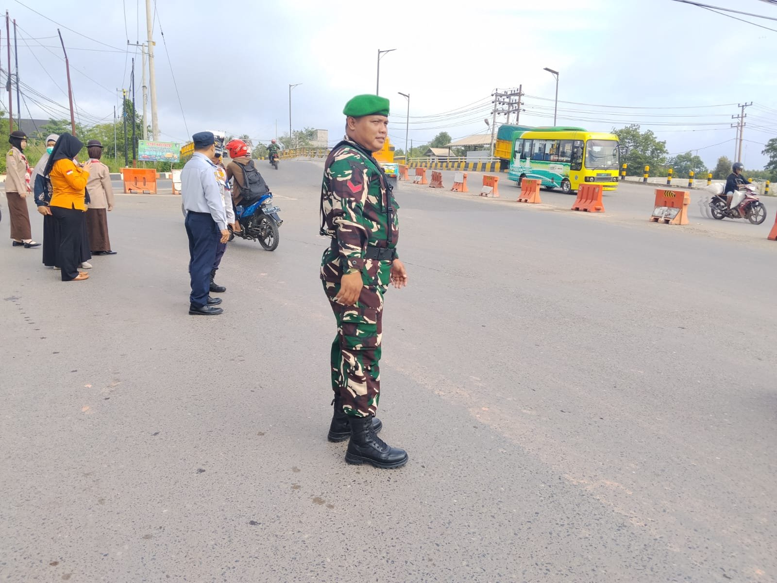Pos Pam Idul Fitri ini menjadi salah satu titik strategis pengendalian lalu lintas dan keamanan di wilayah Barito Kuala. Kehadiran aparat gabungan di lokasi tidak hanya untuk mengatur arus kendaraan, tetapi juga memberikan rasa aman bagi pengendara yang melintas. Sejumlah kendaraan roda dua maupun roda empat tampak diarahkan dengan tertib melewati jalur yang telah disiapkan, sementara petugas sigap memberikan arahan serta bantuan kepada masyarakat.